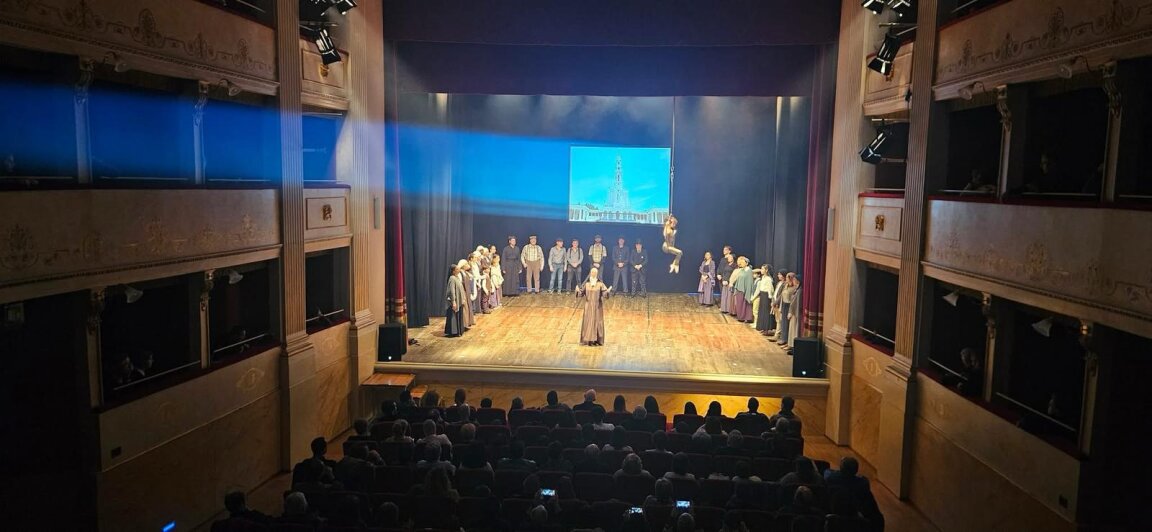 Per chi non lo ha visto dico che la regia di questo spettacolo (curata da Giada Siragusa, n.d.r.) è dinamica, la narrazione si svolge su due piani: la memoria di Suor Lucia con i suoi racconti alle novizie e i combattimenti con il demonio, e il vissuto dei Pastorelli, delle loro famiglie e di tutti gli abitanti di Fatima e dintorni. I canti, coinvolgenti, restano nella testa e nel cuore; i dialoghi veloci, ma carichi di un messaggio che è un Annuncio che non ti lascia indifferente, perché entra nelle pieghe del cuore.