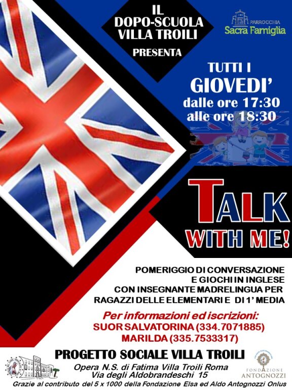 - laboratorio linguistico "Talk with me", consistente in un pomeriggio di conversazioni e giochi in lingua inglese, guidati da docente