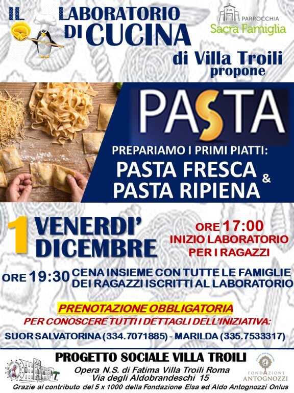 - laboratorio di cucina per ragazzi, con cena fraterna insieme ai genitori;